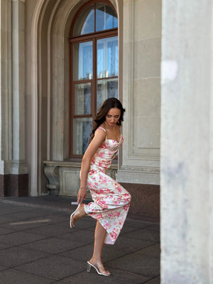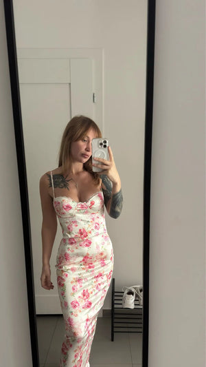 Say goodbye to wardrobe dilemmas with a dress that suits every occasion, from beach days to elegant parties. Its floral design and spaghetti straps make it versatile for any event.