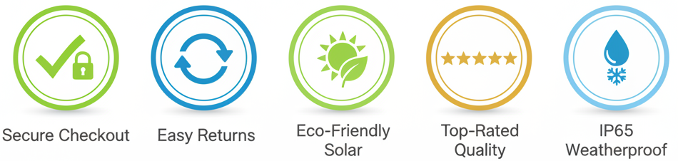 Try our solar-powered garden lights for 30 days, risk-free. If they don't transform your space into a glowing paradise, return them for a full refund. Enjoy eco-friendly, cost-saving lighting that enhances your garden's beauty and ambiance, all backed by our satisfaction guarantee.